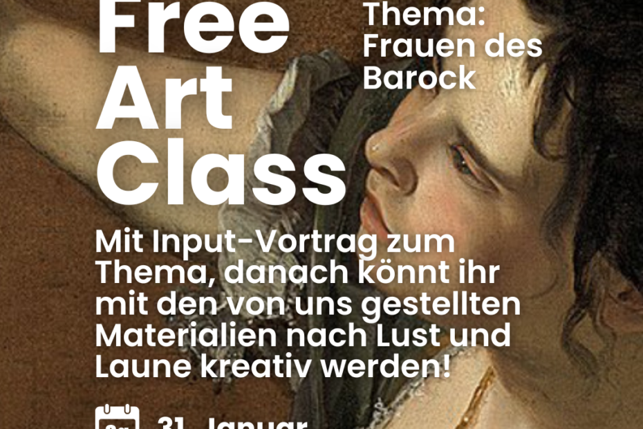 The Studihaus turns into an art studio once again, this time we are taking a look at women of the Baroque period! The event starts off with an input-lecture concerning our topic. After that, you are free to either immediatly use what you’ve learned or to get creative in which ever way you want regardless of the topic. We are providing you with all the material, so you don’t have to bring anything. Everyone is welcome, regardless of their prior knowledge or their creative know-how or gift. Or to say it with the artist Joseph Beuys: Everyone is an artist!
